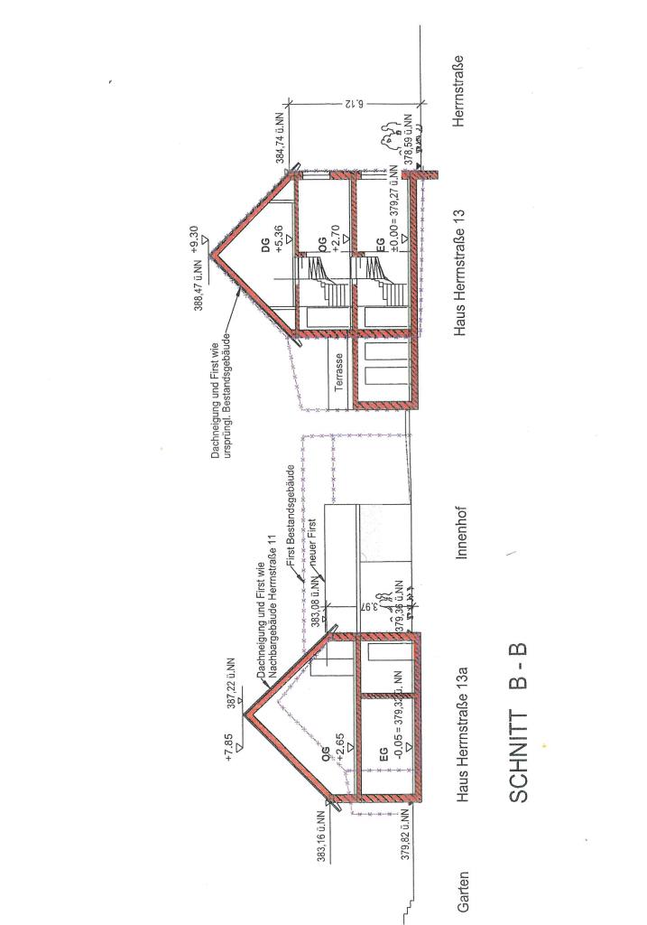Aktuell ist das Grundstück mit zwei Altgebäuden bebaut, die gemäß genehmigtem Vorbescheid abgebrochen werden dürfen. Die Ersatzbauten dürfen gleiches Ausmaß haben, bzw. darf das westliche Haus etwas höher werden, im Angleich an das auf dem südlich anschließenden Grundstück befindliche Haus. Unser Exposé enthält die wesentlichen Teile der genehmigungsfähigen Planung.