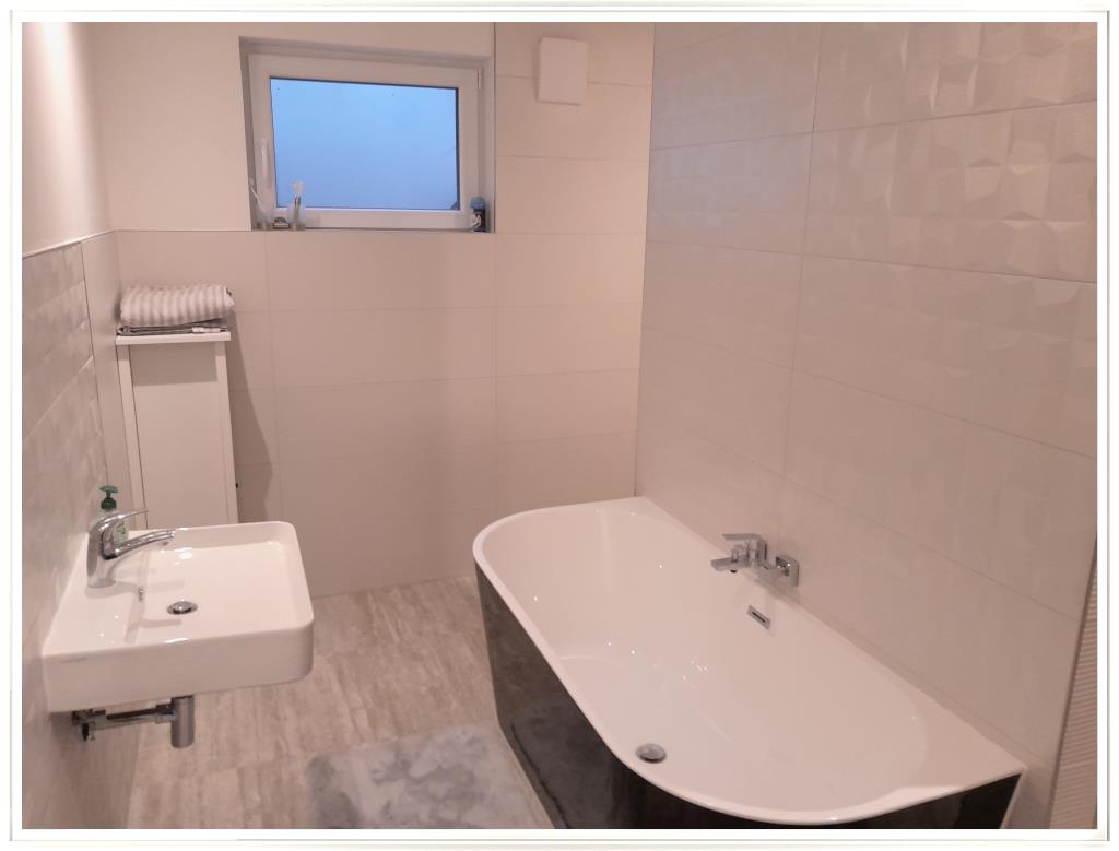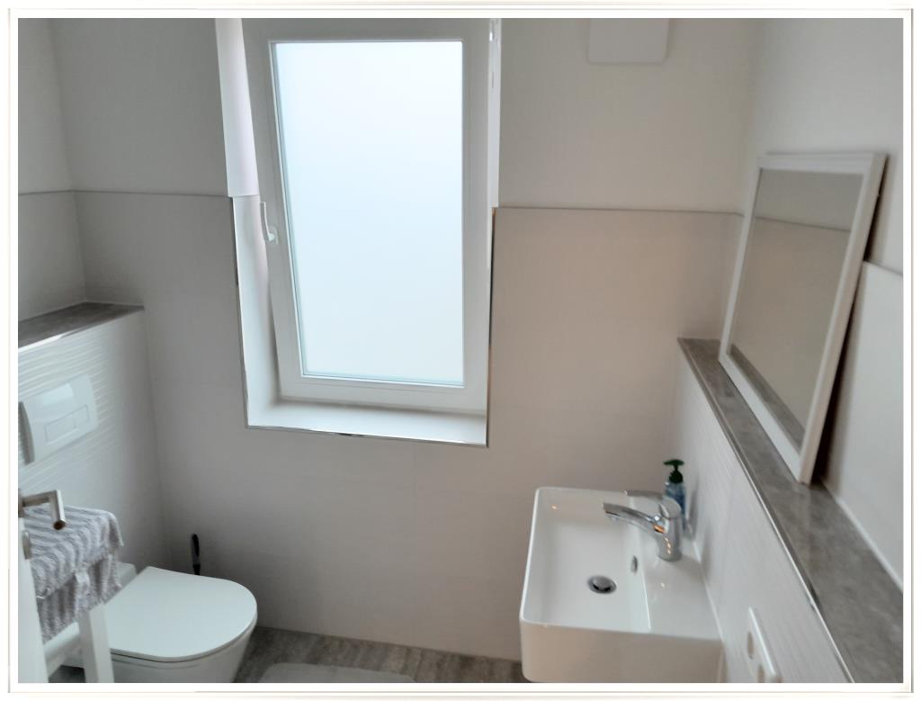 Waschbecken, WC, Handtuchhalter-Heizkörper, natürlich der angenehmen Fußboden-heizung und dem ebenso angenehmen Fenster,
