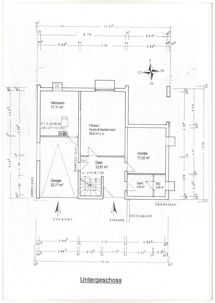 Die bereits erwähnte stattliche Wohn- und Nutzfläche von rund 325 m² verteilt sich auf 3 Ebenen; bitte sehen Sie dazu die in unserem Exposé enthaltenen Grundrisse.