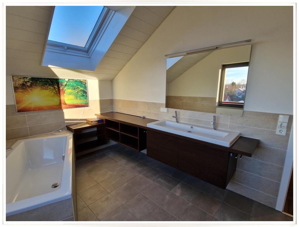 geschmackvoll ausgestattetes Bad im DG, mit Wanne und Dusche, sowie 2 Fenstern;