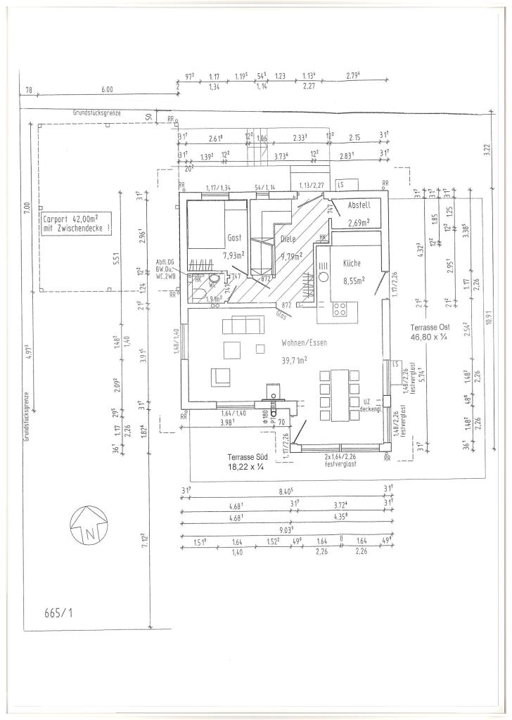 Zeitgemäße Holzständerbauweise, ein hochisoliertes Thermodach, 3-fach-Isolierverglasung, wärme-brückenfreie Konstruktion, sind die Hauptattribute dieses Hauses. Der geringe Heizenergiebedarf wird effizient mit einer Luft-Wärmepumpe realisiert, die Wärmeabgabe erfolgt flächendeckend über Heizmodule in der Decke. Nachhaltiges Bauen bedeutet auch in Zukunft eine sehr hohe Wertstabilität eines Eigenheims, bezogen auf die anstehenden Energieeffizienzauflagen und die Verwendung von umweltschonenden Materialien.