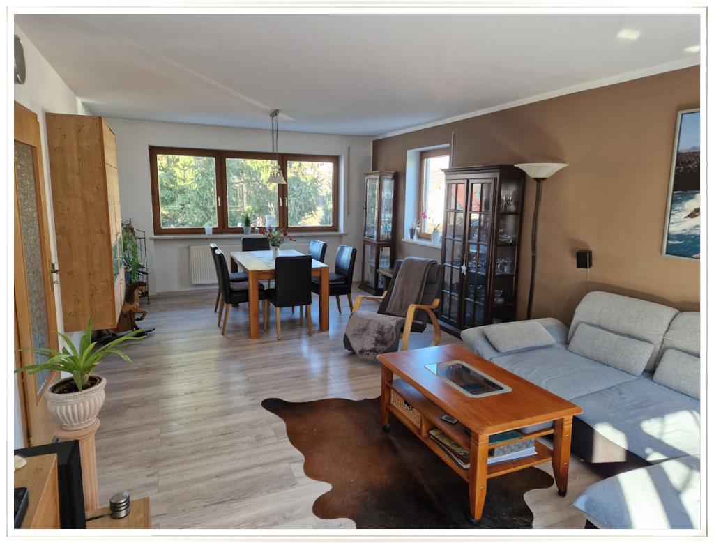 21 m² großes Zimmer, das sich für viele Zwecke eignet: es könnte als großes Büro dienen, oder als Jugend-zimmer, oder auch als Fitness-Oase. Neben diesem Zimmer gibt es einen weiteren beheizten Raum für Ihre Hobbies. Die ins Haus integrierte Garage gestattet Ihnen, jederzeit trockenen Fußes ins Haus zu gelangen, das Garagentor ist per Fernbedienung bequem vom Auto aus zu öffnen. Der 'normale' Hauszugang führt über eine Außentreppe zum Erdgeschoss, das recht 'klassisch' aufgeteilt ist: ein knapp 33 m² großes Wohnzimmer erhält Licht von Süden, Osten und Norden, nebenan befindet sich die voll eingerichtete Küche mit angrenzender Speisekammer. Von der Küche und einem Zimmer aus ist der fast 12 m² große Nordwest-Balkon zu erreichen, mit schöner Spätnachmittags- und Abendsonne. Ein Duschbad ergänzt den praktischen Grundriss. Über einen Wintergarten sind die große Südterrasse und der Garten zu erreichen.