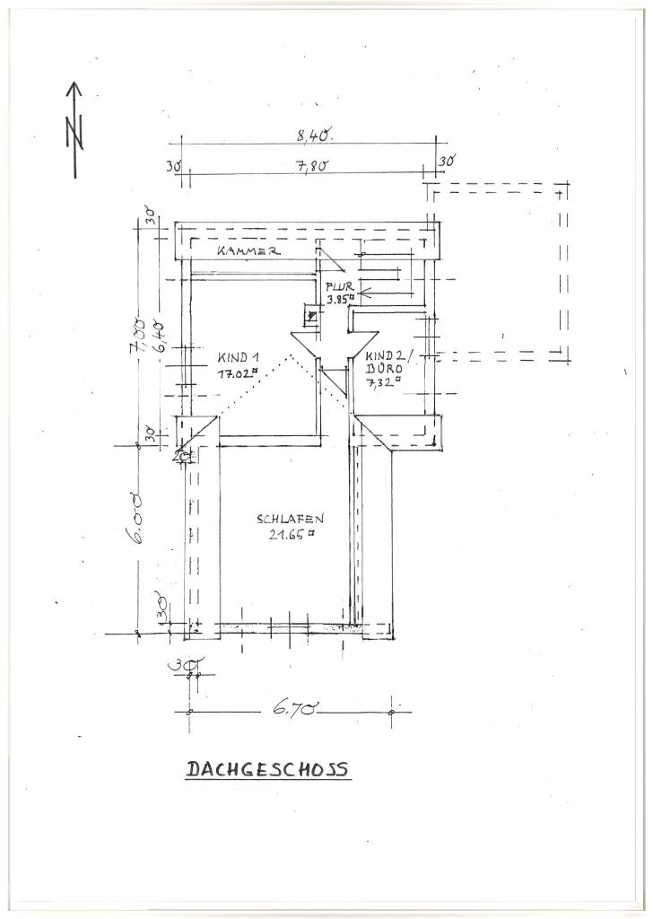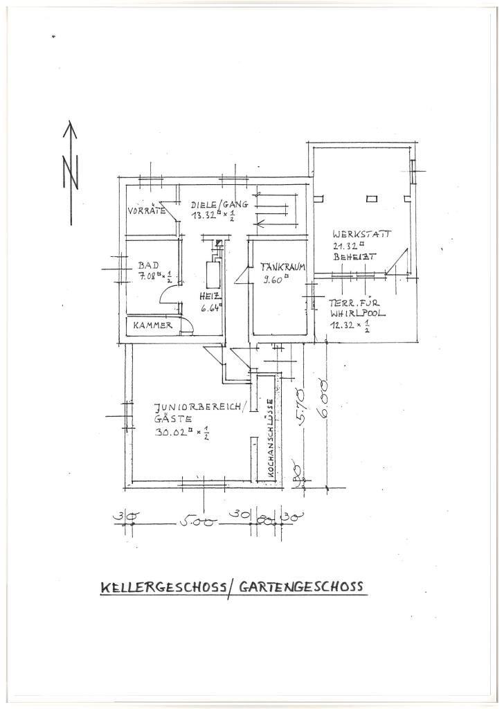 Ein etwa 30 m² großer 'Juniorbereich' mit Fenstern nach Süden und Westen oberhalb Erdniveau; da hier die Raumhöhe von 2,40 m nicht erreicht wird, haben wir die Wohnflächen im UG (das erwähnte Juniorzimmer, das Bad, die Diele) nur zu 50% in die Wohnfläche eingerechnet;