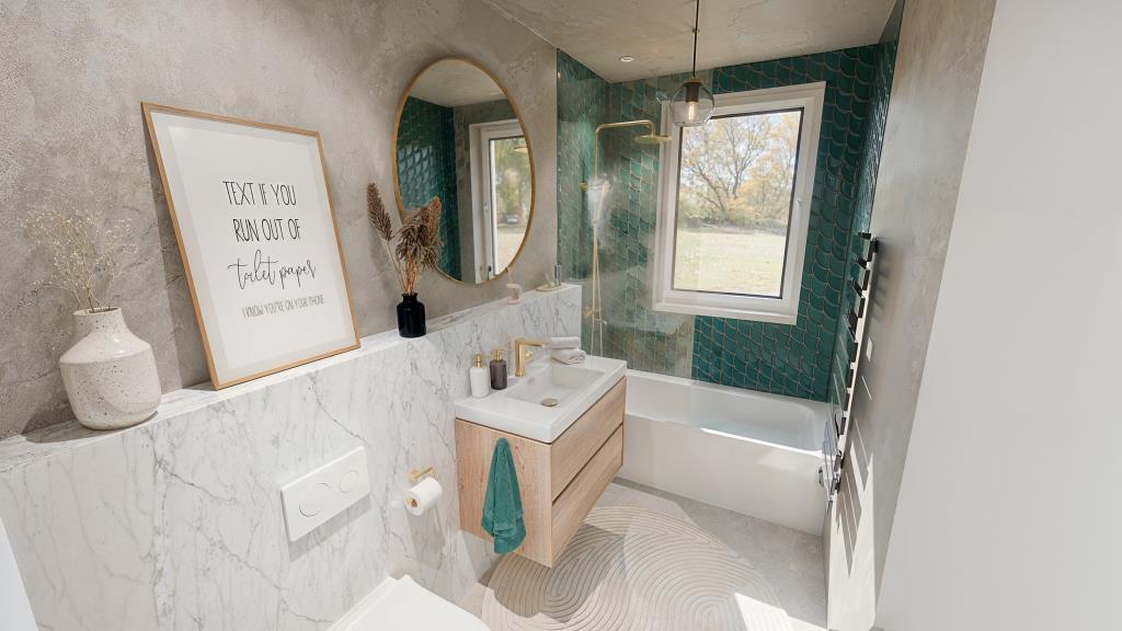 -Gästebad mit Wanne, Waschbecken, WC, sehr angenehm mit Fenster,