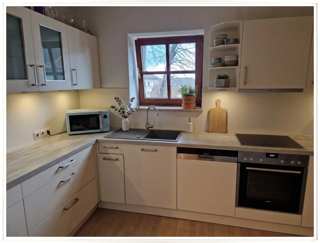 Die Küche ist mit einer ansprechenden Einbauküche ausgestattet.
